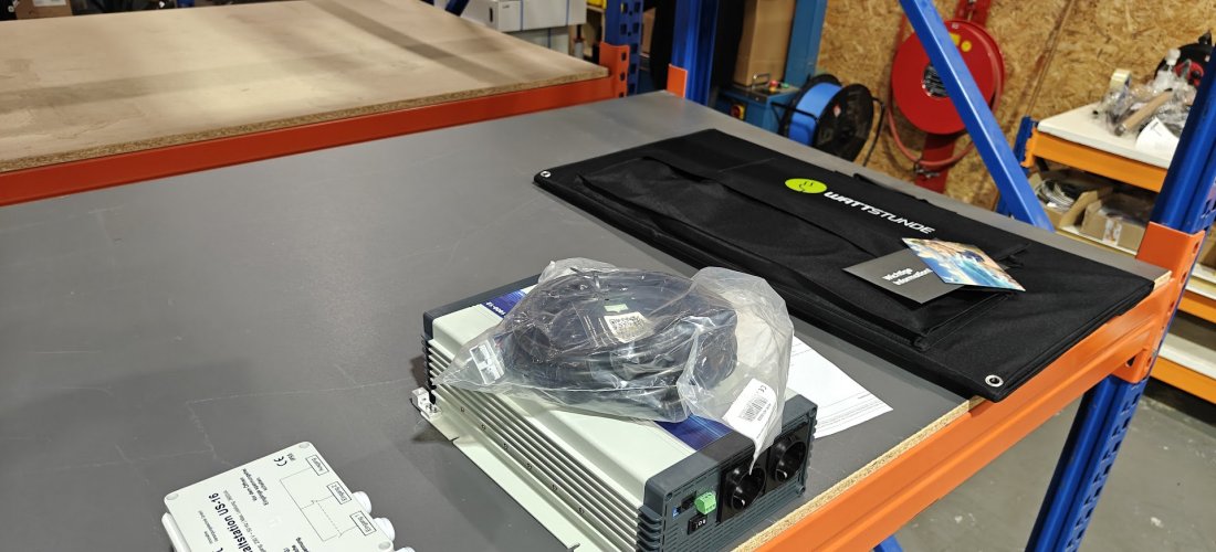 Om de huishoudbatterij perfect op te laden, hebben we ook een Wattstunde 200 Watt uitklapbaar zonnepaneel geïnstalleerd.