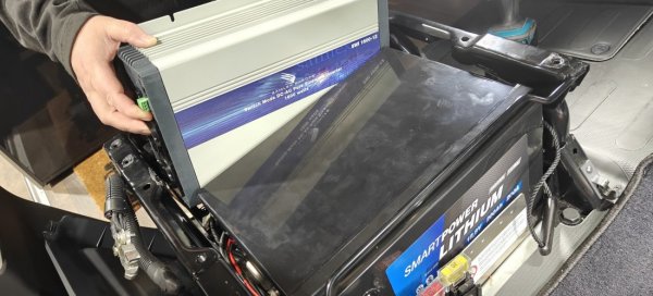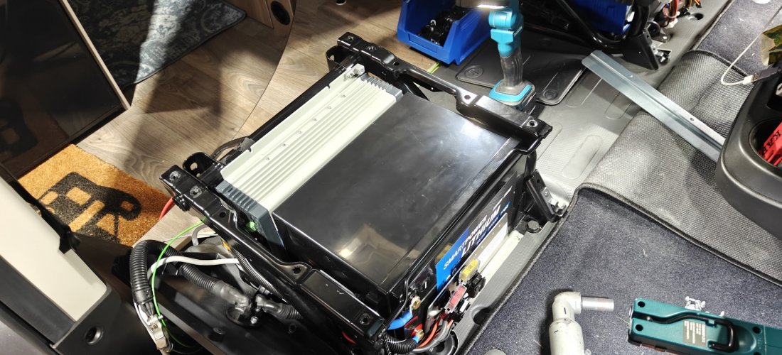 Het absolute hoogtepunt van dit project? We hebben een enorme 300Ah Smart Power Lithium Accu samen met de krachtige Samlex 1600 Watt omvormer volledig onder de stoel van de Citroën/Fiat weten te plaatsen! Dit is een vakkundige prestatie die maximale ruimtebesparing combineert met maximale energiecapaciteit.