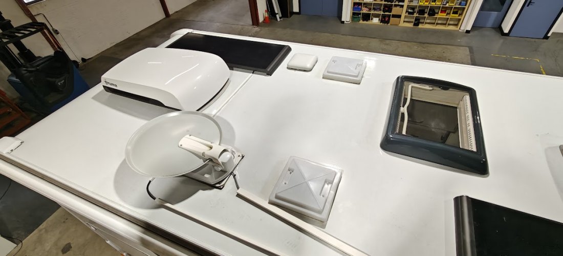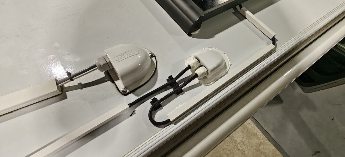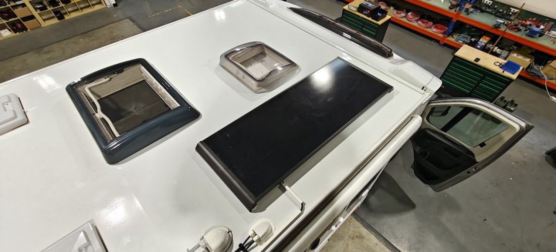 Om de lithiumaccu optimaal te laden, zijn er twee zonnepanelen van elk 150 watt op het dak geplaatst.